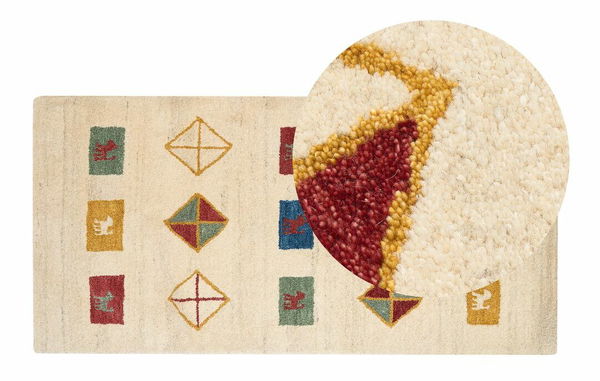 Skrášlite si spálňu alebo obývaciu izbu týmto jedinečným kobercom. Má neobyčajný geometrický vzor a je vyrobený z mimoriadne kvalitnej vlny, ktorá je zárukou pohodlia a odolnosti. Vďaka ručne všívanej textúre koberca a vzoru, ktorý mu dodáva hĺbku, je skutočne výrazným kúskom. Neutrálna béžová doplnená farbenými detailmi sa ľahko kombinuje so zariadením boho, tradičných alebo moderných interiérov.