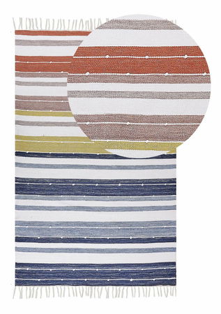 Tento koberec rozjasní váš interiér a vnesie doň veselú náladu. Má farebný pruhovaný vzor a dekoratívne strapce, vďaka ktorým oživí akýkoľvek priestor. Je ručne vyrobený z odolného syntetického materiálu, takže ho možno použiť v interiéri alebo v exteriéri. Ak ho umiestnite do obývacej izby, spálne alebo na terasu, celý priestor v okamihu ožije.