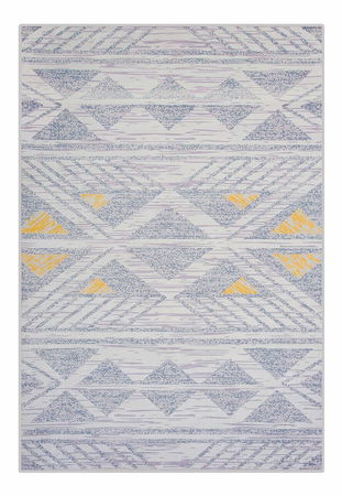 Obdĺžnikový koberec s geometrickým vzorom vnesie do vašej spálne alebo obývacej izby štipku škandinávskeho štýlu. Podklad v odtieňoch sivej dopĺňajú žlté trojuholníky, ktoré rozžiaria vzhľad interiéru. Koberec je vyrobený z odolného a na dotyk jemného polyesteru, vďaka ktorému sa ľahko čistí a udržiava.