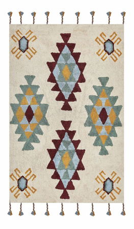 Ak máte radi nezvyčajné doplnky, potom bude pre vás tento koberec ideálnou voľbou. Geometrický vzor robí z tohto koberca originálny dekoratívny kúsok, ktorý dodá akémukoľvek interiéru odvážny a jedinečný charakter. Koberec je celý vyrobený z bavlny, čo zaisťuje pohodlie pri používaní a trvácnosť koberca. Dobre sa kombinuje s rôznymi štýlmi interiérového zariadenia, od boho štýlu až po moderný alebo tradičný.