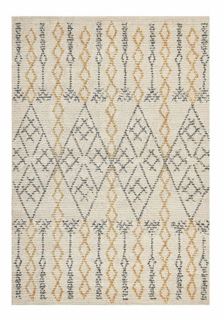 Doplňte vzhľad svojho interiéru dekoratívnym kobercom, ktorý oživí akýkoľvek priestor. Tento koberec s geometrickým vzorom v žltej a čiernej farbe na béžovom podklade vynikne najmä vtedy, ak ho umiestnite vedľa pohovky alebo postele v svetlom neutrálnom odtieni. Je ručne všívaný a je vyrobený z bavlny, ktorá je zárukou dlhoročnej odolnosti a kvality.