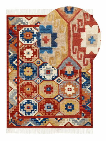 Skrášlite svoj domov týmto farebným kobercom, ktorý nielen upúta pozornosť vašich hostí, ale oživí aj chladné interiéry. Vďaka svojmu vzoru a ozdobným strapcom sa skvele hodí do obývačky i spálne. Je vyrobený ručne z vlny, je odolný a nevyžaduje si špeciálnu starostlivosť na to, aby vám vydržal roky. Koberec je navyše obojstranný a vhodný aj do priestorov s podlahovým kúrením.