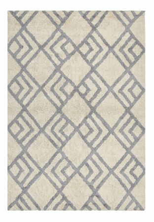 Zútulnite si obývačku týmto svetlobéžovým kobercom. Vyznačuje sa na pohľad príjemným geometrickým vzorom v sivej farbe, vďaka ktorému bude vynikať medzi ostatnými doplnkami. Ručne všívaný koberec je vyrobený z bavlny, je výnimočne mäkký a odolný. Umiestnite ho pred pohovku alebo vedľa postele a doprajte svojim nohám pohodlie a svojmu interiéru nový vzhľad.