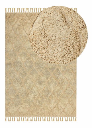Tento klasický obdĺžnikový koberec v nádhernom odtieni béžovej sa stane dokonalým doplnkom interiérov zariadených v rôznych štýloch. Marocký vzor a ozdobné strapce mu dodávajú nádych orientálneho štýlu. Umiestnite ho vedľa postele alebo pohovky a užívajte si jemný bavlnený materiál a príjemný pocit pod nohami.