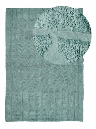 Vneste do priestoru teplo a útulnosť pomocou vhodne zvolených doplnkov. Tento izbový koberec v zaujímavom odtieni zelenej je vďaka svojmu geometrickému vzoru a textúre dokonalým doplnkom, ktorý rozjasní akýkoľvek interiér. Umiestnite ho vedľa postele alebo pred pohovku a užívajte si na dotyk jemný bavlnený materiál a príjemný pocit pod nohami.