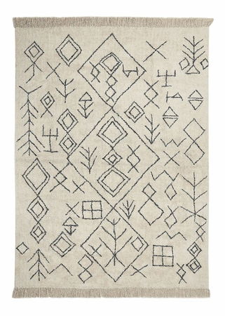 Vďaka jedinečnému geometrickému vzoru vynikne tento koberec najmä v obývacej izbe a spálni. Je vyrobený z bavlny a polyesteru, vďaka čomu je mäkký a príjemný na dotyk, takže je vhodnou voľbou do najviac používaných izieb v dome. Vďaka svojmu dizajnu bude najlepšie vyzerať v interiéroch zariadených v orientálnom a boho štýle, ale svoje využitie nájde aj v moderných interiéroch.