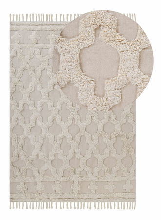 Krásny koberec dokáže úplne zmeniť vzhľad miestnosti. Tento koberec je vyrobený z prírodnej bavlny, je mäkký a odolný a nielenže ochráni vašu podlahu, ale aj vytvorí príjemnú vrstvu pod vašimi nohami. Je zdobený marockým štvorlístkovým vzorom a strapcami, vďaka čomu pôsobí mimoriadne dekoratívne.