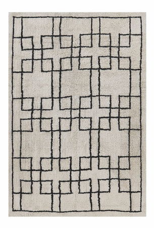 Hrejivý koberec je prvkom, ktorý vnesie do priestoru útulnosť a dotvorí celkový vzhľad miestnosti. Vysokú odolnosť a príjemný pocit pod nohami zaručuje použitie prírodnej bavlnenej tkaniny. Geometrický vzor na koberci skvele vynikne v škandinávskych alebo moderne zariadených interiéroch.