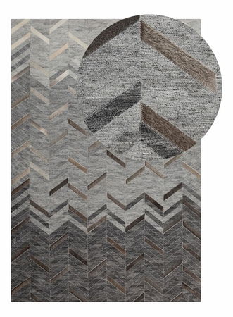 Doplňte svoj interiér týmto izbovým kobercom, ktorý doň vnesie moderný nádych. Je vyrobený z pravej odolnej kože a vytvorí príjemný a mäkký pocit pod nohami. Má zaujímavý geometrický vzor, ktorý kombinuje svetlú a tmavú sivú farbu. Práve vďaka svojmu farebnému prevedeniu je vhodný do interiérov zariadených v rôznych štýloch.