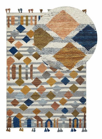 Tento kelímový koberec vnesie do vášho interiéru sviežu boho atmosféru. Koberec je ručne tkaný z vlny a bavlny, je odolný a nevyžaduje si každodennú údržbu na to, aby vám vydržal mnoho rokov. Tento kúsok s geometrickým vzorom vo viacerých farbách určite zaujme všetkých vašich hostí a akýkoľvek priestor bude vďaka nemu vyzerať štýlovejšie.