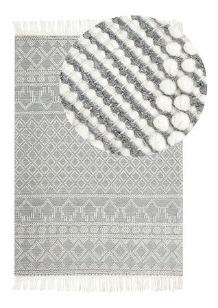 Osviežte svoj interiér a skrášlite ho týmto výnimočným kobercom. Vďaka svojej neutrálnej farbe bude univerzálnym prvkom do obývačky či spálne v modernom a boho inšpirovanom štýle. Kúsok s ozdobnými strapcami a geometrickým vzorom bude dokonale ladiť so svetlým i tmavým dreveným nábytkom. Koberec je vyrobený z kvalitnej vlny, preto je veľmi odolný. Navyše je vhodný do miestností s podlahovým kúrením.
