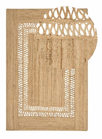 Pomocou tohto koberca s podmanivým vzorom s výrezmi bez námahy oživíte vzhľad svojho interiéru. Jeho jedinečný dizajn, ktorý je precízne ručne vyrobený z juty, mu dodáva nádych rustikálneho šarmu a modernej elegancie a bez problémov zapadne do akéhokoľvek priestoru. Vychutnajte si prirodzený pôvab tohto kúska, ktorý do vášho domova vnesie útulnú a zároveň modernú atmosféru.