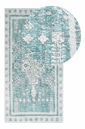 Tento koberec vytvorí jedinečnú orientálnu atmosféru priamo vo vašom interiéri. Mätová zelená farba koberca vyniká v kombinácii s mierne vyblednutým vzorom. Koberec je vyrobený z bavlny a polyesteru, je veľmi odolný a príjemný na dotyk a je vhodnou voľbou napríklad do spálne, obývacej izby alebo domácej kancelárie.