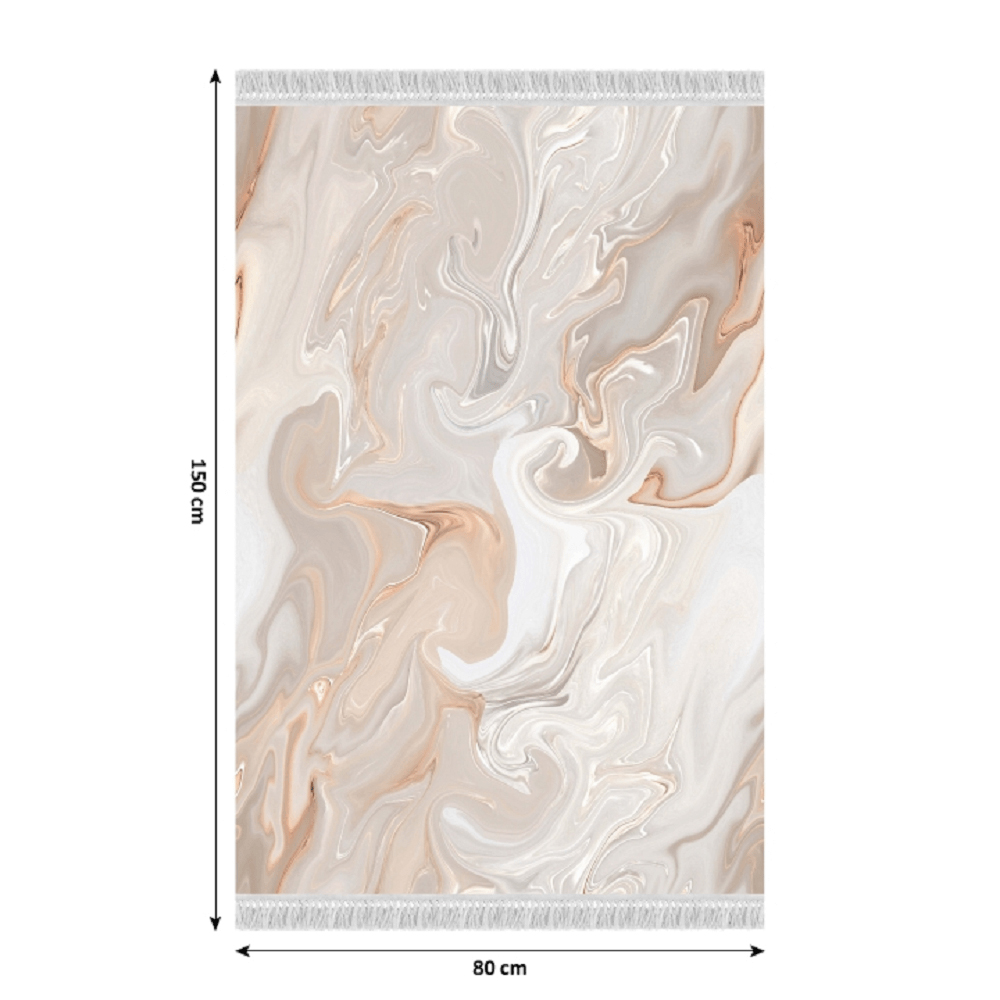 Koberec Renox Typ 2 vo veľkosti 80x150 cm v béžovej, krémovej a bielej farbe je vyrobený zo 100% polyesteru, ktorý zvyšuje jemnosť koberca. Tento koberec má odolné a mäkké vlákna, ktoré sú odolné proti škvrnám, neabsorbujú vlhkosť, nekrútia sa a sú stálofarebné. Jeho svetlé farebné prevedenie a romantický dizajn so strapcami dokonale doplnia miestnosť. S hrúbkou 0,5 cm a gramážou 1250 g/m2 je tento koberec ideálny pre domácnosti a menej namáhané komerčné priestory.