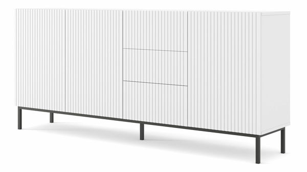 ZobraziťNábytok z prezentovanej kolekcie Rowanna sa vyznačuje eleganciou a jedinečným vzhľadom. Bude vhodný do moderných aranžmánov, ktoré zmenia interiér obývačky alebo jedálne. Jednoduchosť tvarov dokonale ladí s frézovanými čelami. Kovový rám podopierajúci korpus zaisťuje stabilitu a dodáva štýl a výraznosť. Komoda je vybavená tromi skrinkami a tromi zásuvkami. Vďaka tomu je funkčná a uľahčuje organizáciu.