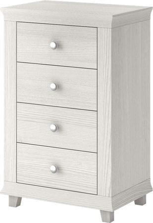 Klasická úzka komoda so štyrmi rovnako plytkými zásuvkami.