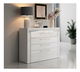 Táto štýlová komoda je ideálnym úložným riešením pre každý moderný interiér. Vyrobená z kvalitnej laminovanej drevotriesky s ABS hranami, ponúka odolnosť a trvácnosť. Dvierka sú pokryté vysokokvalitnou fóliou, ktorá dodáva povrchu elegantný vzhľad a jednoduchú údržbu. Komoda je vybavená štyrmi priestrannými zásuvkami, ktoré poskytujú dostatok priestoru na uskladnenie rôznych predmetov. Kovové strieborné rukoväte a strieborné olemovanie dodávajú komode moderný a sofistikovaný vzhľad, čím sa stáva atraktívnym prvkom vášho domova.
