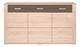 Krásna trojdielna komoda s dvierkami na spodku a 3 zásuvkami nad nimi. Tenké vodorovné sivé úchyty a tenké minimalistické sivé nožičky dodávajú štýl. Tlmič dverí, ktorý poskytuje jemné zatváranie je v cene produktu.