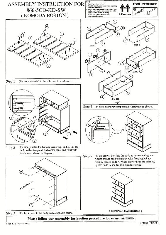 Komoda Boston taktiež vychádza dizajnovo z postele Boston. Komoda je skonštruovaná z dreva vo farbe antickej čerešne a ponúka 5 šuflíkov v 4 úrovniach.