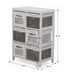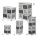 Štýlová komoda univerzálneho využitia a pekného dizajnu. Dá sa využiť v predsieňach, obývacích izbách, študentských izbách alebo aj kúpeľniach. Skladá sa zo šiestich zásuviek. Na zásuvkách sú ozdobné mašličky. Komoda stojí na nožičkách. Farebné prevedenie komody je biela farba v kombinácii so sivou.