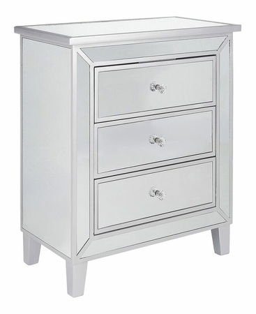 Táto komoda so zásuvkami vnesie nádych luxusu do vašej spálne alebo obývacej izby. Vďaka zrkadlovej povrchovej úprave vyzerá elegantne a štýlovo a dokonale doplní interiéry zariadené v modernom a glamour štýle. Má tri praktické zásuvky, ktoré ponúkajú dostatok úložného priestoru, a možno ju využiť aj ako nočný stolík. Konštrukcia z kvalitného MDF materiálu a drevené nohy zaručujú stabilitu nábytku a kvalitu, ktorá vydrží.
