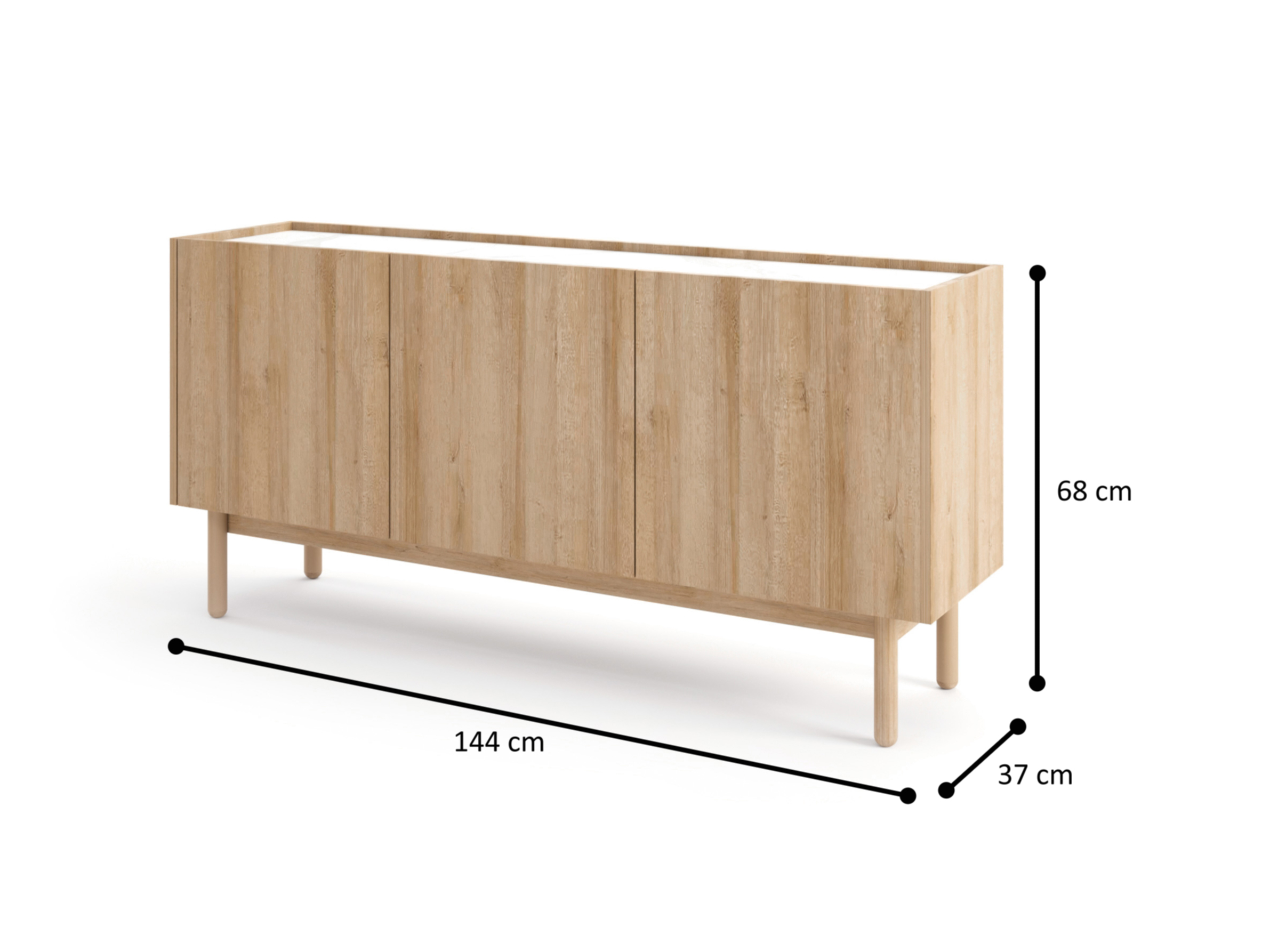Komoda Bohemia s výškou 68 cm, hĺbkou 37 cm a zaujímavou drevnou rivierou je ideálnym doplnkom pre váš domov. Táto komoda je vyrobená z kvalitnej laminovanej dosky s hrúbkou 16 mm a okrúhlymi hránami vyrobenými z ABS materiálu o hrúbke 0,5 mm. Dizajnérskym prvkom sú drevené nožičky s výškou 19,5 cm, ktoré spolu s drevnou rivierou vytvárajú dokonalý dojem. Komoda Bohemia Vám poskytne dostatok úložného priestoru so štyrmi zásuvkami a zároveň skrášli váš interiér. Objednajte si ju ešte dnes a získajte útulný kúsok nábytku, ktorý bude slúžiť vašej rodine na mnoho rokov.
