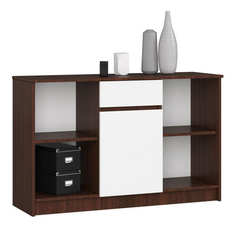 Komoda Briar (wenge + biela) je štýlový a praktický nábytokový kúsok, ktorý dokonale doplní váš interiér. S výškou 77 cm, šírkou 120 cm a hĺbkou 40 cm ponúka dostatok úložného priestoru pre vaše veci. Jeho kombinácia farieb wenge a biela mu dodáva elegantný a moderný vzhľad. S pevnou konštrukciou a kvalitnými materiálmi je táto komoda trvanlivá a odolná. Svojím originálnym dizajnom a praktickými vlastnosťami je Komoda Briar skvelou voľbou pre každého, kto hľadá štýlové a funkčné riešenie pre svoj domov.