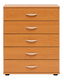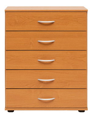 Užšia komoda, ktorá má päť užších zásuviek pod sebou. Hodí sa do pracovne alebo študentskej izby. Zásuvky majú širšie zaoblené úchyty.