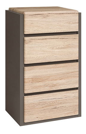Úzka Komoda obsahuje 4 zásuvky, vybavená systémom tichého uzatvárania. Dve možnosti hrany dosky a frontov: šikmý rez hrany: Orech Columbia. Hrany s jemne zaoblenými tvarmi: Dub san remo svetlý.