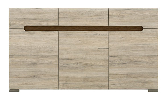 Krásna komoda KOM3D3S_8_15 zo série Azteca renomovaného značky Black Red White je k dispozícií v dvoch farebných prevedeniach. Elegantná a zároveň luxusná biela farba s bielym leskom dodá Vášmu interiéru punc luxusu, druhé farebné prevedenie je z dubového dreva, ktoré je tak isto krásne. Krásny dizajn komody dotvára aj ozdobná lišta v prevedení wenge. Komoda je trojdverová a je vyrobená z kvalitných materiálov.