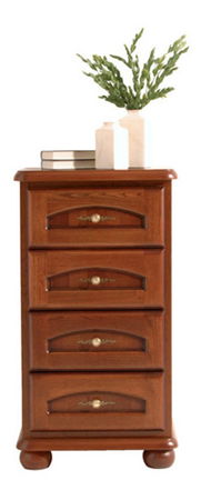 Užšia komoda ktorá spája luxus a eleganciu. Skrášlite si ňou obývacie izby, jedálne, pracovne alebo spálne. Má štyri zásuvky, ktoré majú ozdobne vyrezané fronty a pekné úchyty. Komoda stojí na širokých nožičkách.