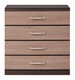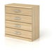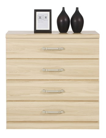 Širšia komoda so štyrmi zásuvkami, ktorou možno zariadiť študentské izby. Jemné línie a jednoduchší dizajn bez výrazných prvkov vystihujú túto komodu. Zásuvky na komode majú ozdobné kovové úchyty.