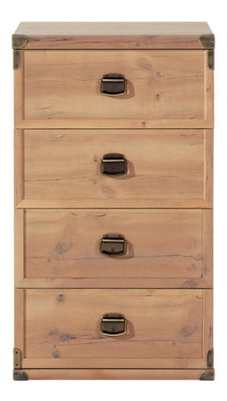 Originálna komoda westernového štýlu so štyrmi zásuvkami. Dizajn komody je vhodný najmä do izieb pre mládež a deti. Môže byť pekným doplnkom v domácnostiach zariadených v prírodnom štýle.