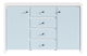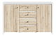 Veľmi praktická a na pohľad príjemná komoda Karet je to pravé do Vášho interiéru. Komoda je rozdelená na tri časti, pričom na vonkajších stranách sú umiestnené skrinky a v strede zásuvky. Komoda obsahuje štyri zásuvky a dve skrinky. Skrinky obsahujú jednu policu. Nábytok rady Karet sa vyznačuje jednoduchou montážou, jemnými úchytmi a kvalitnými závesmi, ktoré zaručujú hladké otváranie dvierok.