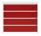 Moderná a vzhľadná komoda Karet je vynikajúci pomocník do Vášho interiéru. Priestor na ukladanie vecí tvoria štyri zásuvky umiestnené na valčekových kolajničkách. Nábytok rady Karet sa vyznačuje jednoduchou montážou, jemnými úchytmi a kvalitnými závesmi, ktoré zaručujú hladké otváranie dvierok.