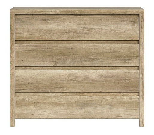 Širšia komoda so štyrmi zásuvkami moderného minimalistického dizajnu. Komoda skrášli vaše obývacie izby, jedálne ale aj pracovne. Zásuvky nemajú úchyty, ale zrezané horné hrany pomocou ktorých sa zásuvky otvárajú.