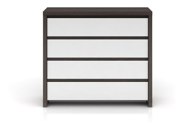 Širšia komoda so štyrmi zásuvkami moderného minimalistického dizajnu. Komoda skrášli vaše obývacie izby, jedálne ale aj pracovne. Zásuvky nemajú úchyty, ale zrezané horné hrany pomocou ktorých sa zásuvky otvárajú.