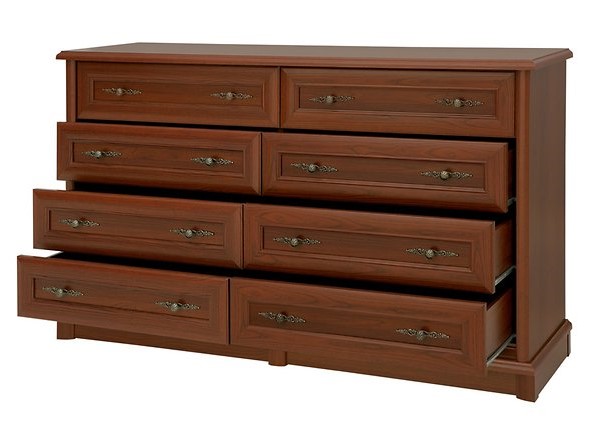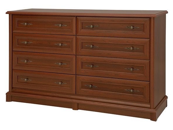 Široká komoda nádherného dizajnu, ktorá poteší milovníkov rustikálneho štýlu. Komoda má osem širokých zásuviek, ktoré vám zabezpečia dostatok úložného priestoru. Úchyty na zásuvkách sú ozdobne kované.
