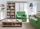 Jasný dub dáva teplo, z lesku bieloby vyžaruje modernosť, tráva oživuje a dodáva fantáziu. Šedý sokl zdôrazňuje grafiku foriem. Závisle od voľby úchytov a zostavenia dekórov v doskách, čelách a sokloch, 15 prvkov systému umožnuje hráť proporciami dojmov.