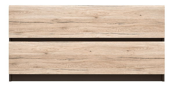 Širšia komoda s dvomi zásuvkami. Zaujme vás príjemným farebným prevedením a zásuvkami so skosenými hornými hranami a bez úchytov. Je vhodná na akékoľvek vaše doplnky a zútulní priestory vašich obývacích izieb, predsiení a spální.