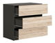 Širšia komoda s tromi zásuvkami. Zaujme vás príjemným farebným prevedením a zásuvkami so skosenými hornými hranami a bez úchytov. Je vhodná na akékoľvek vaše doplnky a zútulní priestory vašich obývacích izieb, predsiení a spální.
