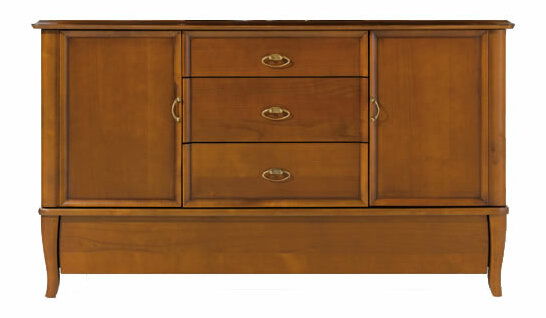 Komoda, ktorá bude nielen luxusným, ale aj praktickým doplnkom vašich domácností. Starožitný dizajn je doplnený o vyrezávané nohy a ozdobné kovové úchyty dvierok a zásuviek. Komoda má dvoje dvierka a tri zásuvky uprostred.