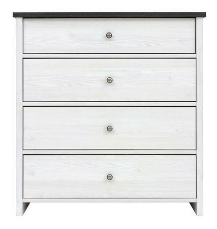 Uložte si vaše doplnky do naozaj skvostnej komody miešajúcej prvky francúzskeho nábytku s modernými trendami. Komoda má štyri zásuvky umiestnené pod sebou. Zásuvky majú guľaté kovové úchyty.