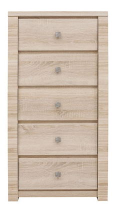 Vkusná komoda C_KOM5S zo série Senegal značky Black Red White Vám poskytne 5 zásuviek. Táto komoda je nadizajnovaná do moderného dizajnu a vďaka farebným prevedeniam pôsobí vkusne a luxusne zároveň. Komoda je vyrobená z kvalitných materiálov.