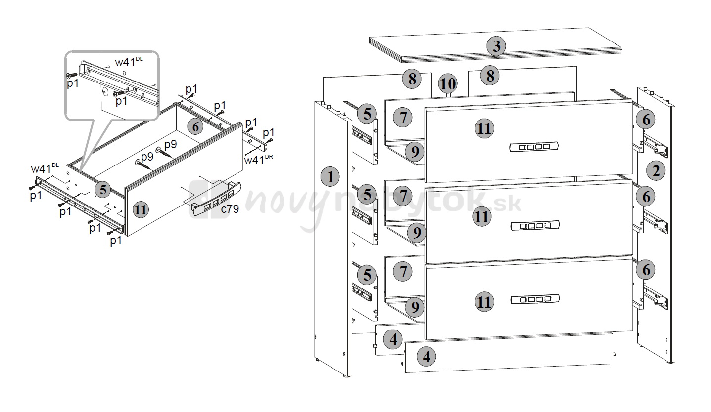 - Len so zásuvkami