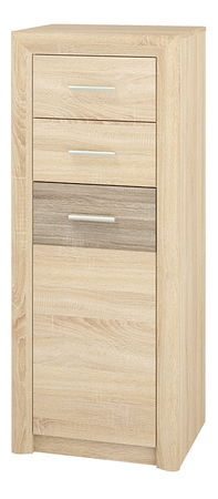 Komoda s jednou poličkou a dvomi zásuvkami vo farbe sonoma svetlá + MDF sonoma hľuzovka prináša sviežosť do každého interiéru, takže je určená pre osoby ktoré ocenia eleganciu, prirodzenosť a jednoduchosť. Dosky sú z lamina najvyššej kvality. Odolné voči poškriabaniu, vlhkosti a vysokým teplotám. Dodáva sa v demonte.