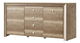 Trojdielna komoda so štyrmi zásuvkami uprostred a skrinkami s jednou poličkou po stranách. Pekné vlnovkové úchyty dotvárajú celkový dizajn nábytku. Netradičné farebné prevedenie dreva san remo mu dodáva jedinečnosť.