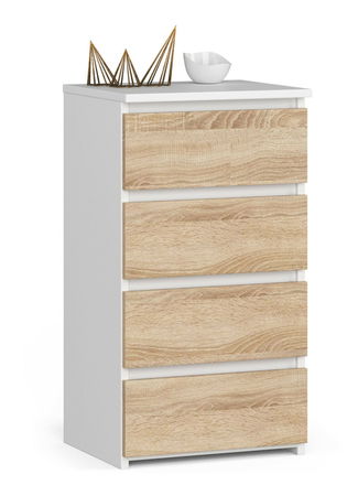 Komoda Cipriano II (biela + dub sonoma) je praktický a štýlový kus nábytku, ktorý sa hodí do každej modernej domácnosti. S výškou 74 cm, šírkou 40 cm a hĺbkou 35 cm ponúka dostatok úložného priestoru pre vaše veci. Komoda je vyrobená z kvalitného materiálu, čo zaručuje jej trvanlivosť a odolnosť. Biela + Dub sonoma farba dodáva komode elegantný a nadčasový vzhľad. Svojím jednoduchým a funkčným dizajnom sa ľahko vkomponuje do akéhokoľvek interiéru. Komoda Cipriano II je ideálna voľba pre tých, ktorí hľadajú spojenie praktickosti a štýlu v jednom produkte.