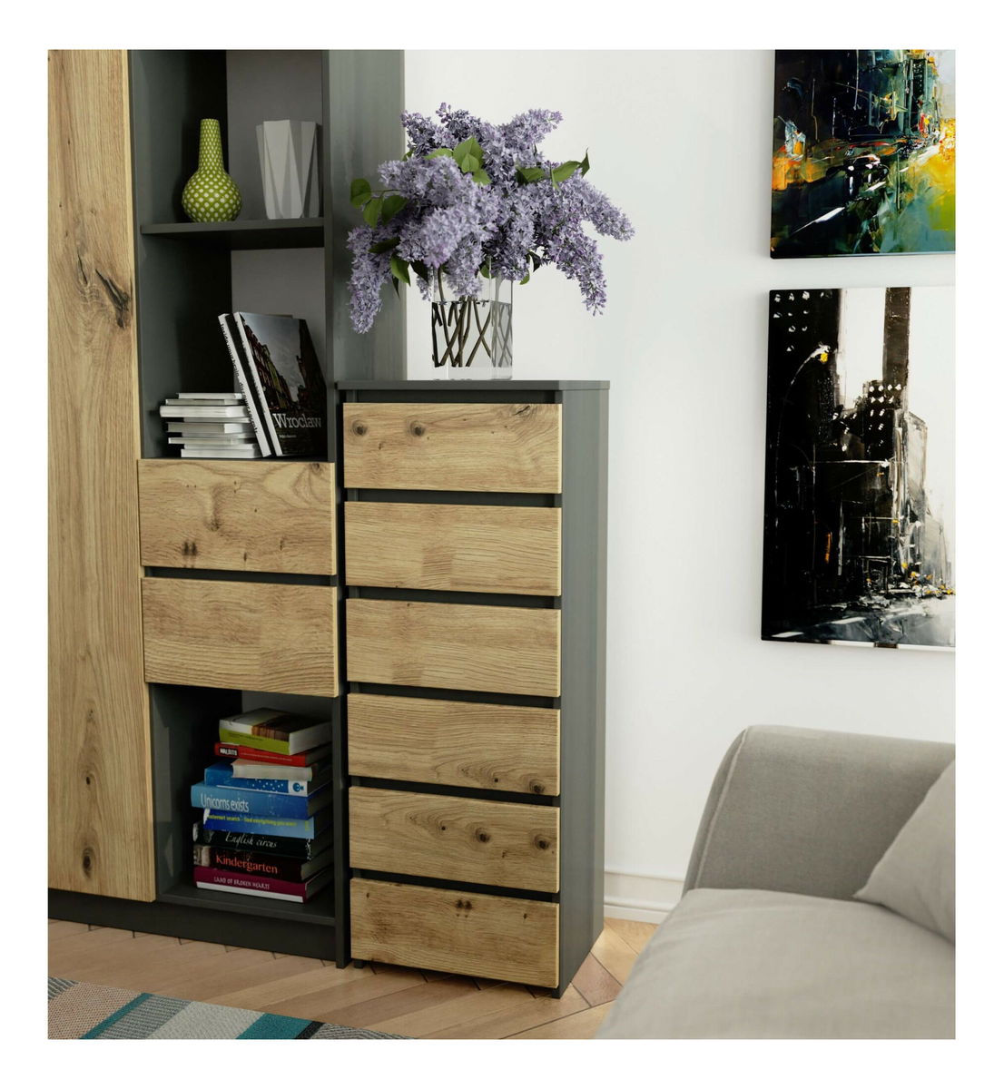 Komoda Cipriano IV (grafit sivý + dub artisan)