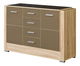 Široká komoda s dvomi dvierkami a štyrmi zásuvkami uprostred. Komoda Vám poskytne dostatok úložného priestoru pre Vaše oblečenie, doplnky, knižky alebo drobnosti. Moderný dizajn komody dopĺňajú ozdobné segmenty na frontoch dvierok a zásuviek a vrchnej časti. Dvierka a zásuvky majú široké úchyty.